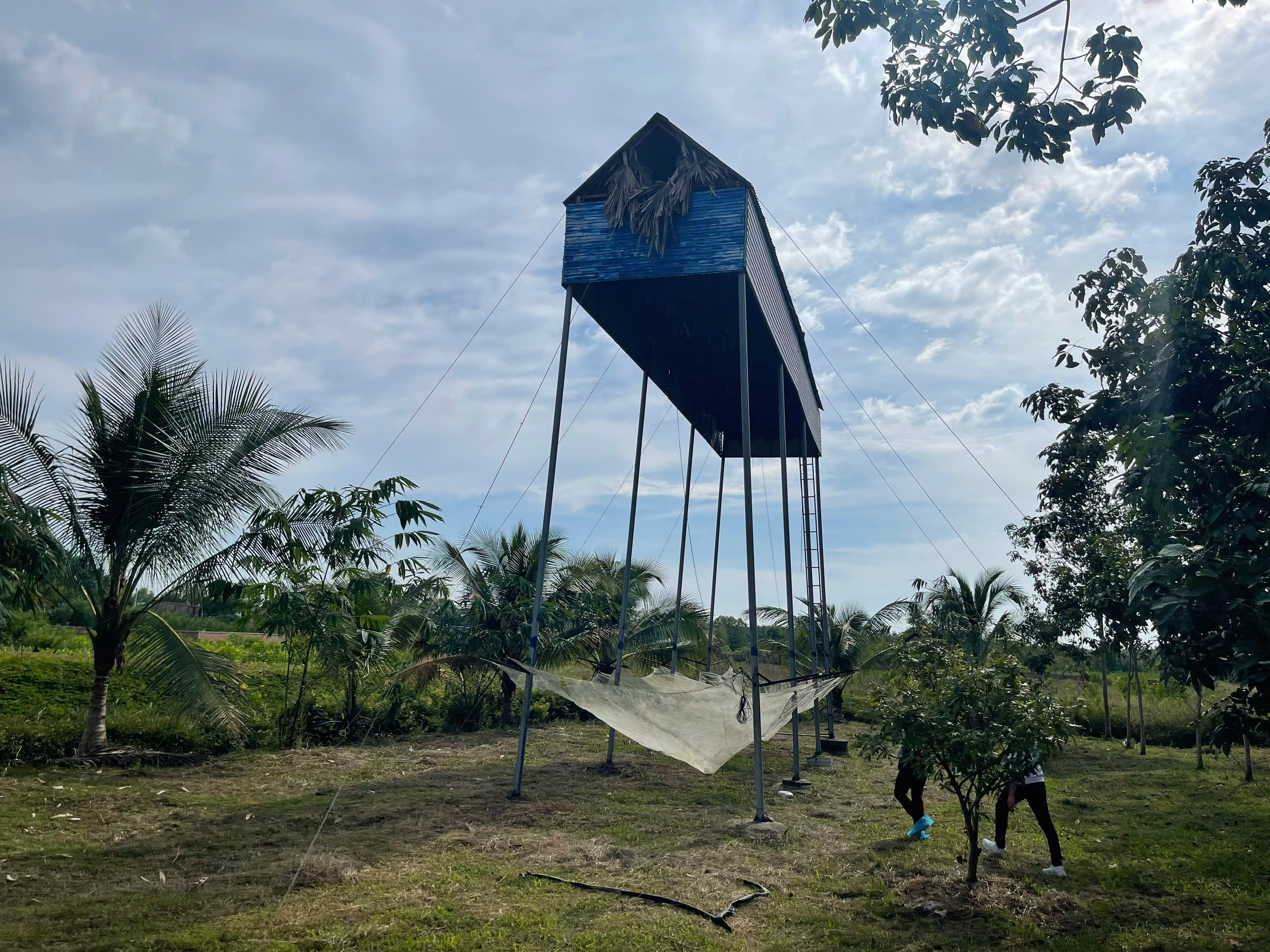In Vinh Cuu District, Dong Nai Province, southern Vietnam, bat guano houses mounted on poles about 5–6 meters above the ground, layered with coconut palm fronds, are a common sight on most farms. As day breaks, hundreds of bats return to these houses to rest. Every few days, farmers collect the droppings that accumulate on tarps laid beneath the structures and sell them as organic fertilizer.