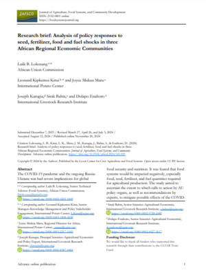 Research brief: Analysis of policy responses to seed, fertilizer, food and fuel shocks in three African Regional Economic Communities
