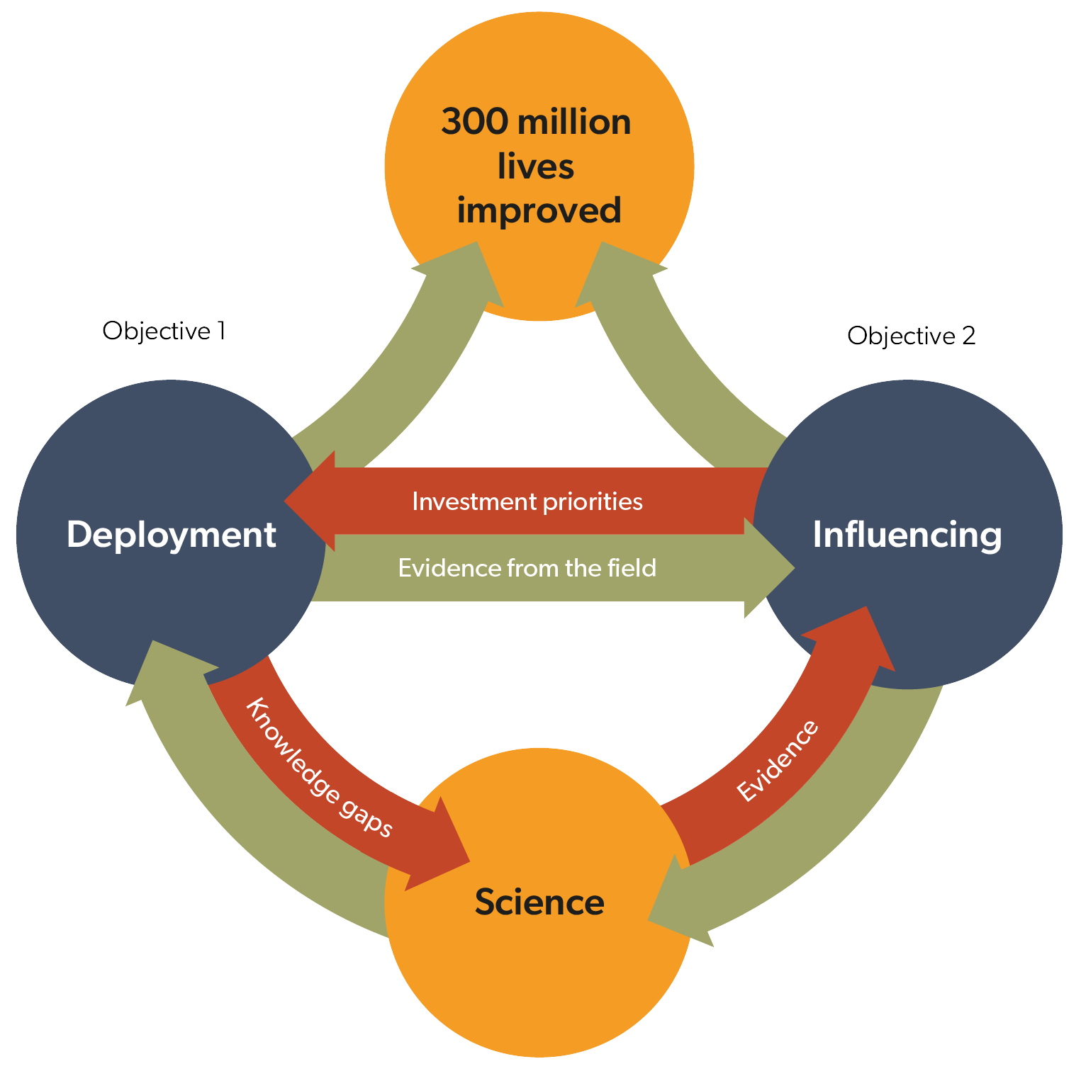 This new, ambitious strategy builds upon two mutually dependent objectives: developing and deploying solutions at scale, and influencing policies and investments which together, will achieve significant impacts for more than 300 million people’s lives.