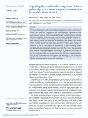 Upgrading the smallholder dairy value chain: A system dynamics ex-ante impact assessment in Tanzania's Kilosa district