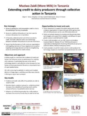 2017Extending credit to dairy producers through collective action in TanzaniaTwine, Edgar E.Rao, E.J.O.Baltenweck, IsabelleOmore, Amos O.