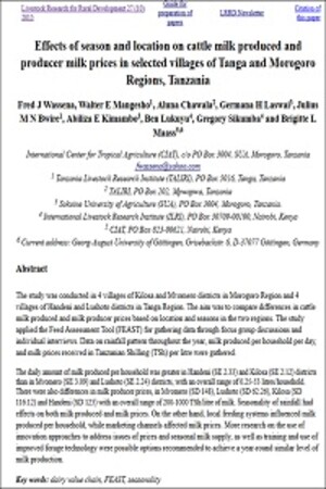Effects of season and location on cattle milk produced and producer milk prices in selected villages of Tanga and Morogoro Regions, Tanzania