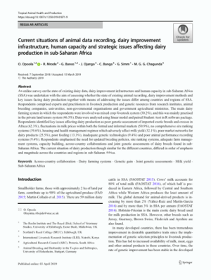 Current situations of animal data recording, dairy improvement infrastructure, human capacity and strategic issues affecting dairy production in sub-Saharan Africa