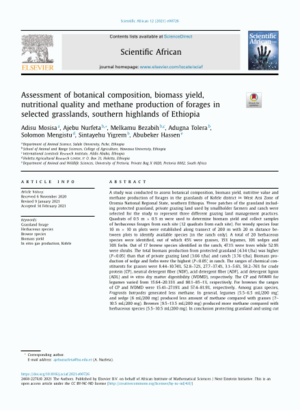 Assessment of botanical composition, biomass yield, nutritional quality and methane production of forages in selected grasslands, southern highlands of Ethiopia