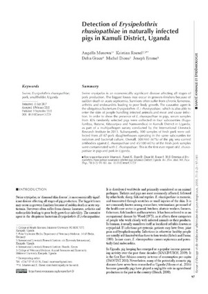 Detection of Erysipelothrix rhusiopathiae in naturally infected pigs in Kamuli District, Uganda