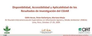 Disponibilidad, accessibilidad y aplicabilidad de los resultados de investigación de los Centros del Grupo Consultivo para la Investigación Agrícola Internacional (CGIAR)