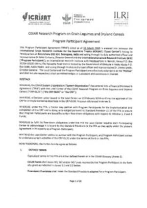 CGIAR Research Program on Grain Legumes and Dryland Cereals: Program participant agreement