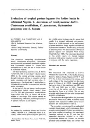 Evaluation of tropical pasture legumes for fodder banks in subhumid Nigeria. 2. Accessions of Aeschynomene histrix, Centrosema acutifolium, C. pascuorum, Stylosanthes guianensis and S. hamata