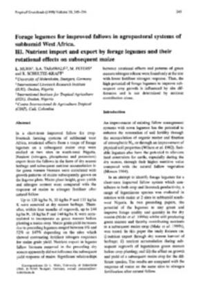 Forage legumes for improved fallows in agropastoral systems of subhumid West Africa. III. Nutrient import and export by forage legumes and their rotational effects on subsequent maize
