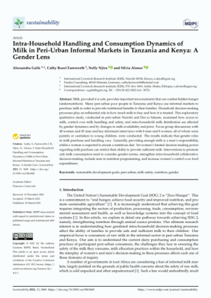 2021Intra-household handling and consumption dynamics of milk in peri-urban informal markets in Tanzania and Kenya: A gender lensGaliè, AlessandraFarnworth, Cathy RozelNjiru, NellyAlonso, Silvia