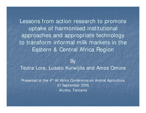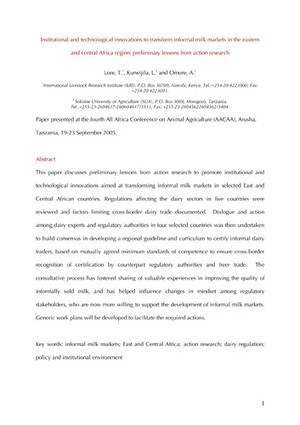 Institutional and technological innovations to transform informal milk markets in the eastern and central Africa region: preliminary lessons from action research