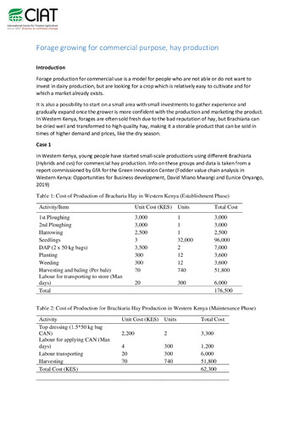 2019Forage growing for commercial purpose, hay productionInternational Center for Tropical Agriculture