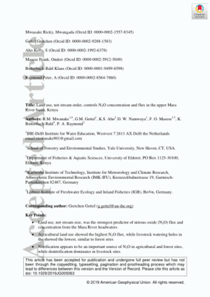 Land Use, Not Stream Order, Controls N2O Concentration and Flux in the Upper Mara River Basin, Kenya
