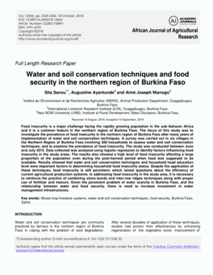 2018Water and soil conservation techniques and food security in the northern region of Burkina FasoSanou, S.Ayantunde, Augustine A.Nianogo, A.J.