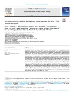2021Advancing climate resilient development pathways since the IPCC’s fifth assessment reportWerners, Saskia ESparkes, EdwardTotin, EdmondAbel, NickBhadwal, SuruchiButler, James R.A.Douxchamps, SabineJames, HarrhyMethner, NadineSiebeneck, JanaStringer, Lindsay C.Vincent, KatharineWise, Russell M.Tebboth, Mark G.L.