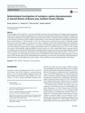 2019Epidemiological investigations of contagious caprine pleuropneumonia in selected districts of Borana zone, Southern Oromia, EthiopiaTeshome, DerejeSori, TeshaleSacchini, FlavioWieland, Barbara