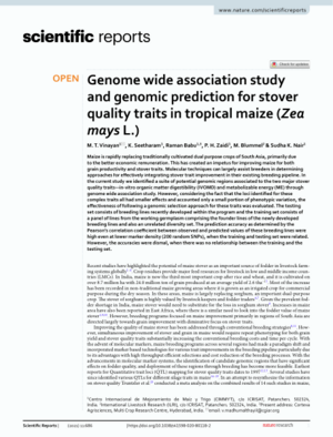 Genome wide association study and genomic prediction for stover quality traits in tropical maize (Zea mays L.)