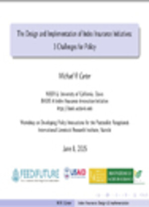 2015The design and implementation of index insurance initiatives: Three challenges for policyCarter, M.R.