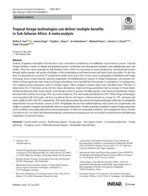 2020Tropical forage technologies can deliver multiple benefits in Sub-Saharan Africa: A meta-analysisPaul, Birthe K.Koge, JessicaMaass, Brigitte L.Notenbaert, An Maria OmerPeters, MichaelGroot, Jeroen C.J.Tittonell, Pablo A.