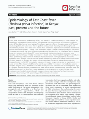2012Epidemiology of East Coast fever (Theileria parva infection) in Kenya: Past, present and the futureGachohi, John M.Skilton, Robert A.Hansen, F.Ngumi, P.N.Kitala, P.M.