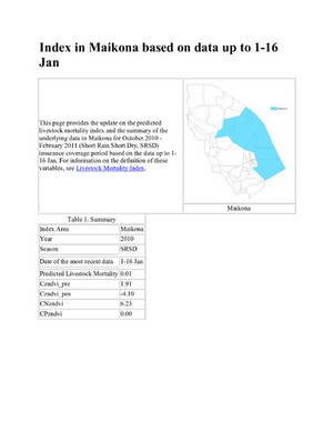 Update on IBLI Index in Maikona based on data up to 1-16 January, 2011