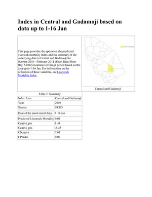 Update on IBLI Index in Central and Gadamoji based on data up to 1-16 January, 2011