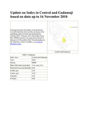 Update on IBLI Index in Central and Gadamoji based on data up to 16 November 2010