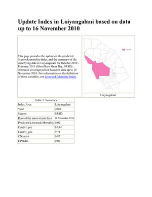 Update on IBLI Index in Loiyangalani based on data up to 16 November 2010