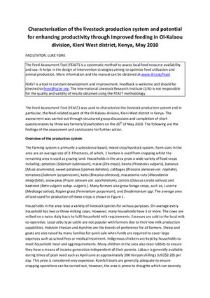 Characterization of the livestock production system and potential for enhancing productivity through improved feeding in Ol-Kalaou division, Kieni West district, Kenya, May 2010
