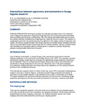 1989Interactions between agronomy and economics in forage legume researchKaufmann, Ralph R. vonMohamed-Saleem, M.A.