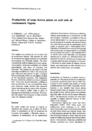 1990Productivity of some browse plants on acid soils of southeastern NigeriaCobbina, J.Atta-Krah, A.N.Meregini, A.D.Duguma, B.