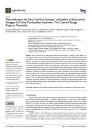 2022Determinants for smallholder farmers’ adoption of improved forages in dairy production systems: The case of Tanga region, TanzaniaTim Ndah, HycenthSchuler, JohannesNkwain, Vandoline N.Nzogela, BeatusMangesho, Walter E.Mollel, RichardLoina, RoseZander, PeterPaul, Birthe K.
