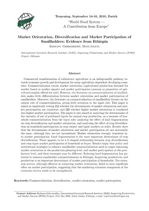 2010Market Orientation, Diversification and Market Participation of Smallholders: Evidence from EthiopiaGebremedhin, BerhanuJaleta, Moti