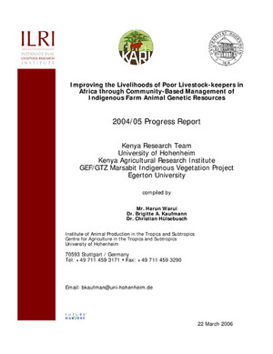 Improving the livelihoods of poor livestock-keepers in Africa through community-based management of indigenous farm animal genetic resources: Kenya 2004/05 progress report