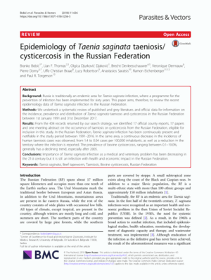 2018Epidemiology of Taenia saginata taeniosis/cysticercosis in the Russian FederationBobić, BrankoThomas, Lian F.Djaković, Olgica DjurkovićDevleesschauwer, BrechtDermauw, VeroniqueDorny, PierreBraae, Uffe ChristianRobertson, LucySaratsis, AnastasiosEichenberger, RamonTorgerson, Paul R.