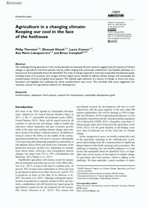 2018Agriculture in a changing climate: Keeping our cool in the face of the hothouseThornton, Philip K.Dinesh, DhanushCramer, Laura K.Loboguerrero Rodriguez, Ana MaríaCampbell, Bruce M.