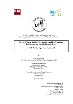 2003Survey of water quality changes with land use type, in the Loitokitok Area, Kajiado District, KenyaGithiga, J.M.Reid, Robin S.Muchiru, A.Dijk, S. van