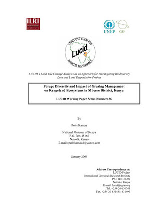 2003Forage diversity and impact of grazing management on rangeland ecosystems in Mbeere District, KenyaKamau, P.