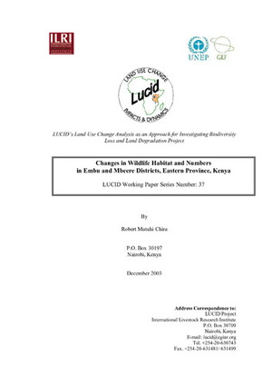 2003Changes in wildlife habitat and numbers in Embu and Mbeere Districts, Eastern Province, KenyaChira, R.M.
