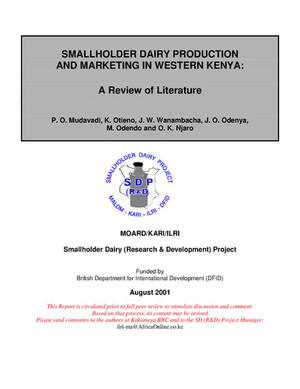 2001Smallholder dairy production and marketing in western Kenya: a review of literatureMudavadi, P.O.Otieno, K.Wanambacha, J.W.Odenya, J.O.Odendo, M.Njaro, O.K.