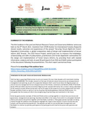 Summary of 3rd webinar on Securing Tenure Rights for Forest Dependent Communities: A global comparative study of design and implementation of tenure reform, 9 March 2021