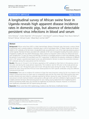 A longitudinal survey of African swine fever in Uganda reveals high apparent disease incidence rates in domestic pigs, but absence of detectable persistent virus infections in blood and serum