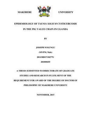 Epidemiology of Taenia solium cysticercosis in the pig value chain in Uganda