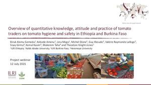 2021Overview of quantitative knowledge, attitude and practice of tomato traders on tomato hygiene and safety in Ethiopia and Burkina FasoGemeda, Biruk A.Amenu, K.Mego, LinaDione, Michel M.Ilboudo, Guy S.Lallogo, Valérie R.Girma, S.Kasim, K.Taha, M.Knight-Jones, Theodore J.D.