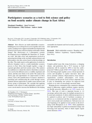 2013Participatory scenarios as a tool to link science and policy on food security under climate change in East AfricaChaudhury, M.Vervoort, Joost M.Kristjanson, Patricia M.Ericksen, Polly J.Ainslie, A.