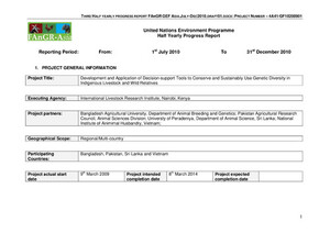 Development and application of decision-support tools to conserve and sustainably use genetic diversity in indigenous livestock and wild relatives: Third half yearly progress report, July 1, 2010 - December 31, 2010