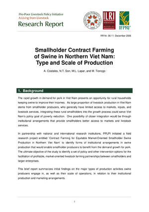 Smallholder contract farming of swine in northern Viet Nam: Type and scale of production.