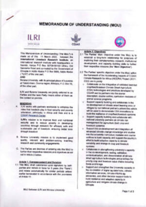 2022Memorandum of Understanding between the International Livestock Research Institute (ILRI) and Debark UniversityInternational Livestock Research InstituteDebark University