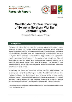 2006Smallholder contract farming of swine in northern Viet Nam: Contract types.Costales, A.Son, N.T.Lapar, Ma. LucilaTiongco, Marites M.