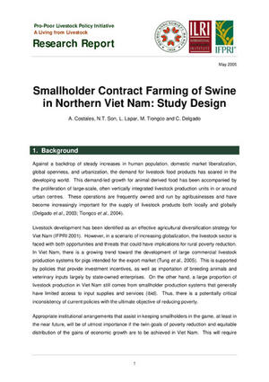 2005Smallholder contract farming of swine in northern Viet Nam: Study designCostales, A.Son, N.T.Lapar, Ma. LucilaTiongco, Marites M.Delgado, Christopher L.